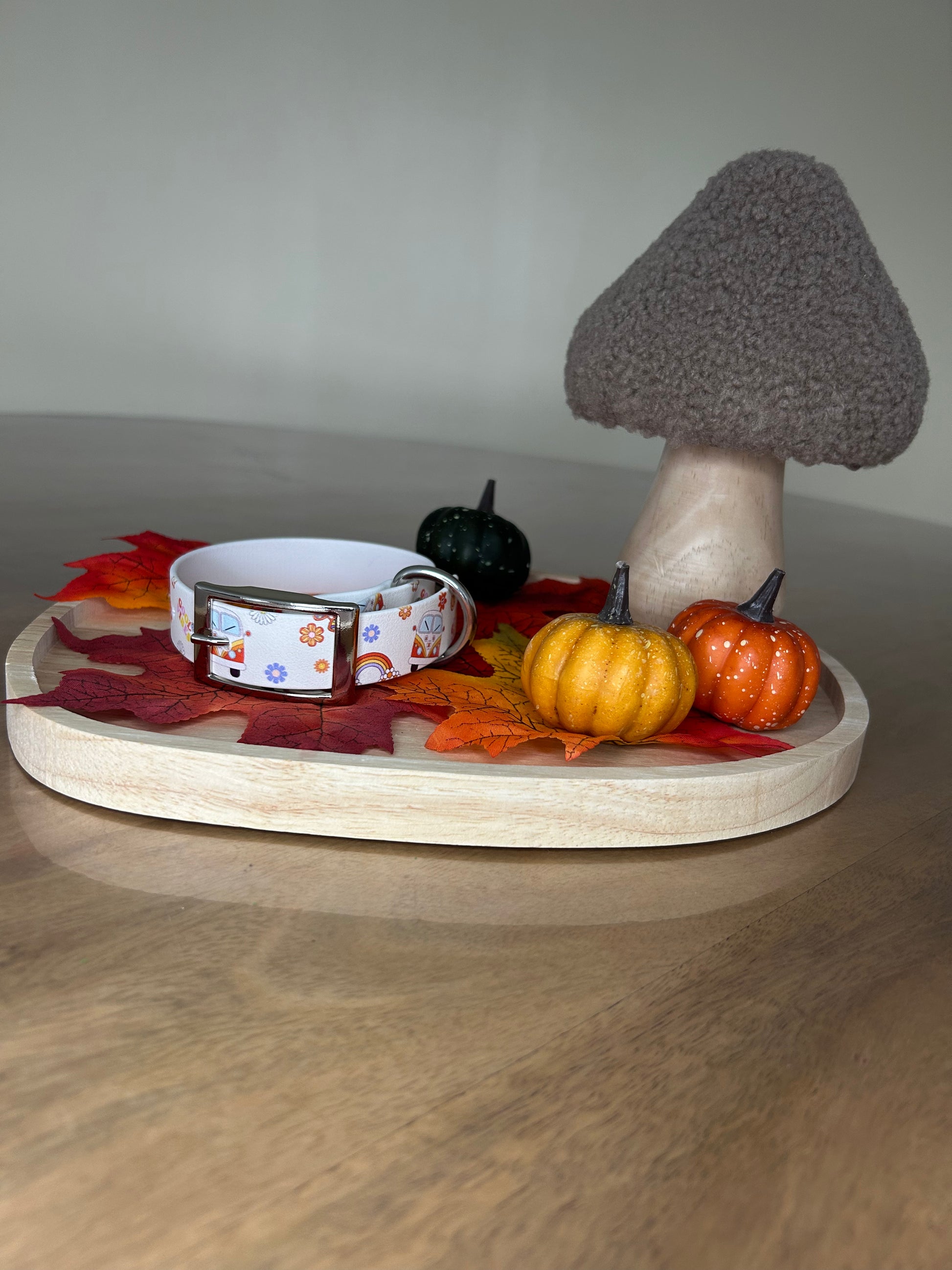 Un collier plein de bonnes ondes 🌈, solide et stylé, pour accompagner votre chien dans toutes ses aventures avec le sourire 🐾💛