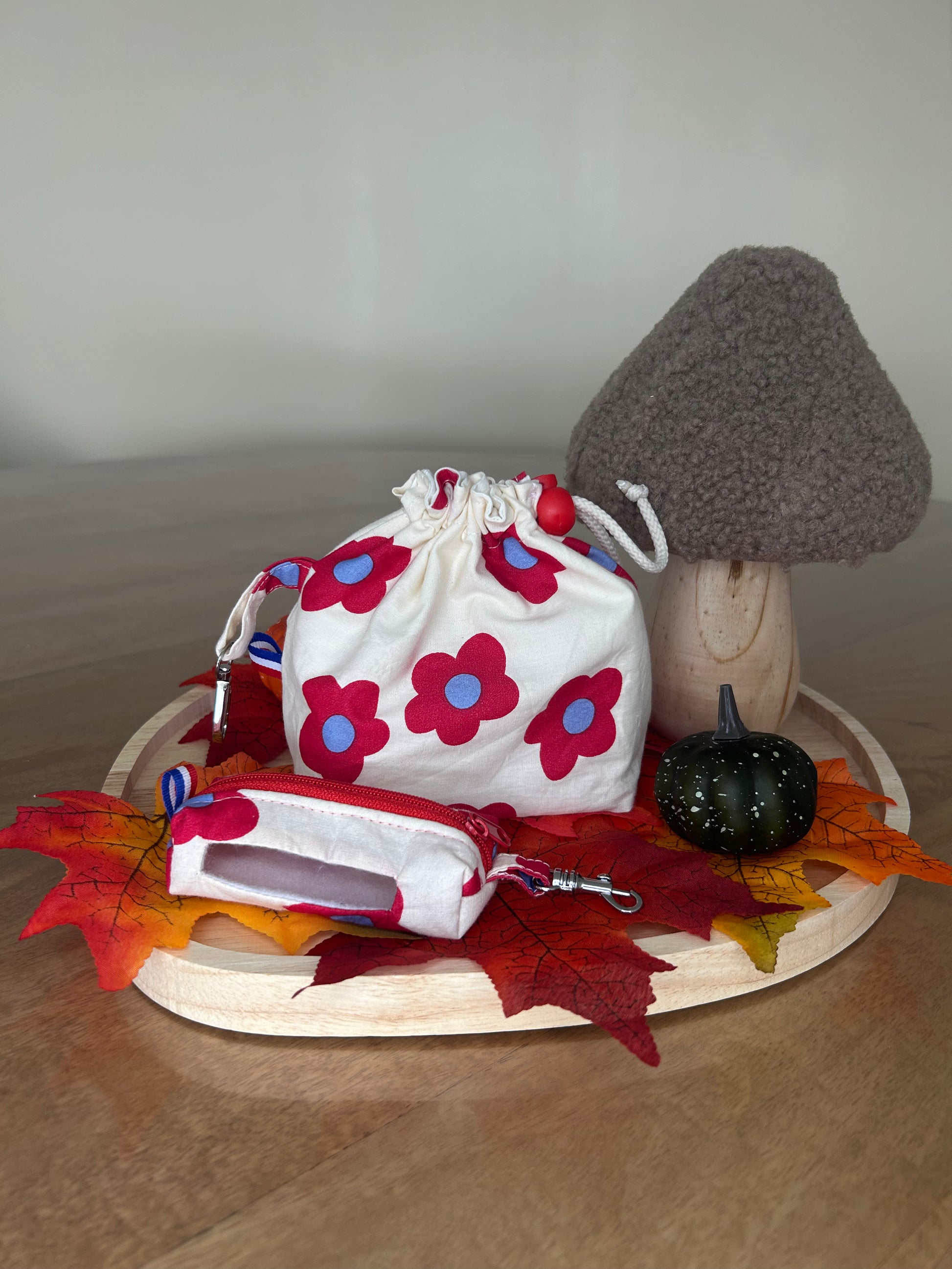 🐾 Pochon de balade motif Fleur Pop – 100% coton, fait main en Normandie 🇫🇷