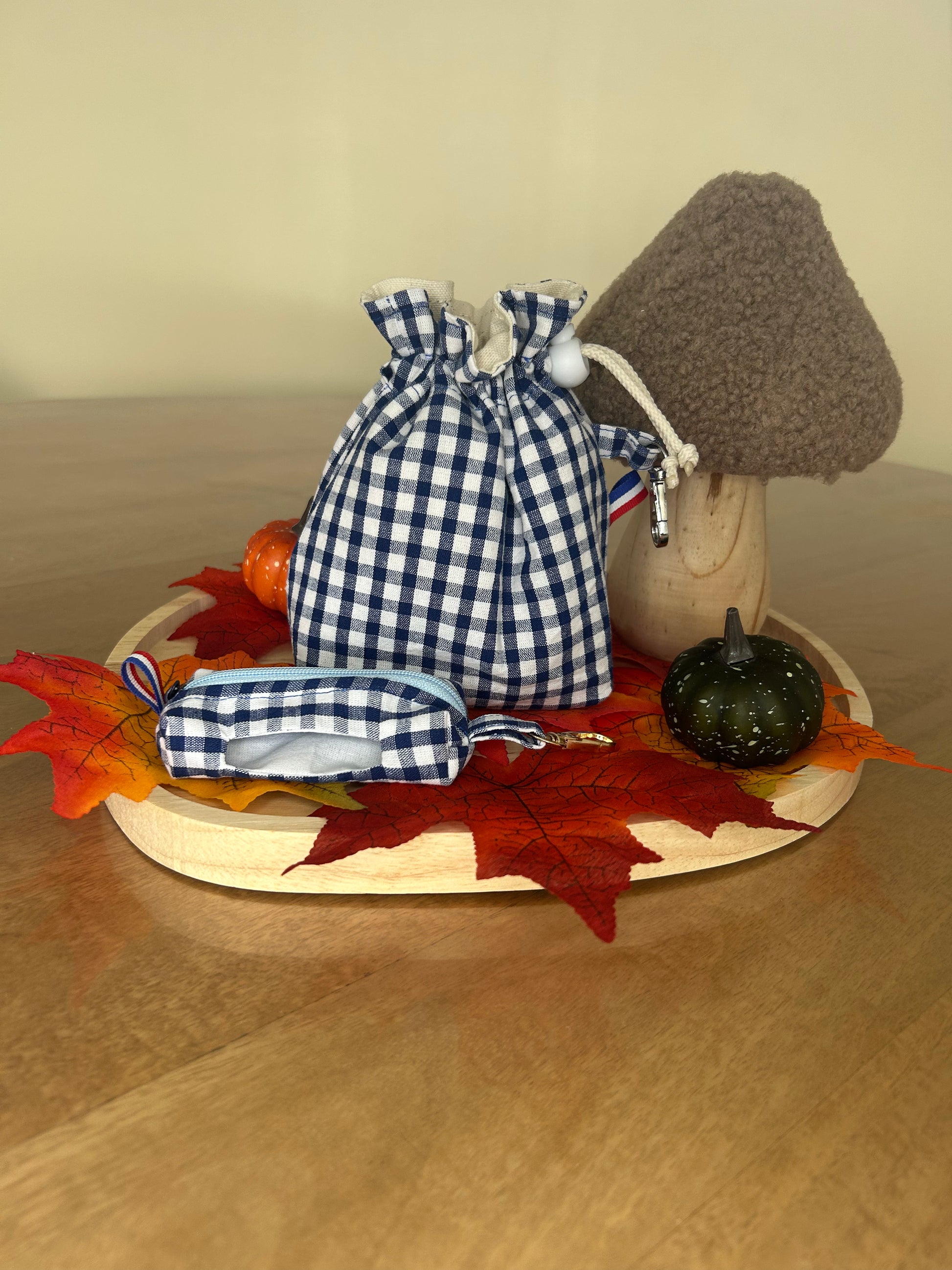 Ajoutez une touche de fraîcheur et d’élégance à vos balades avec notre pochon au motif Vichy bleu 💙🤍