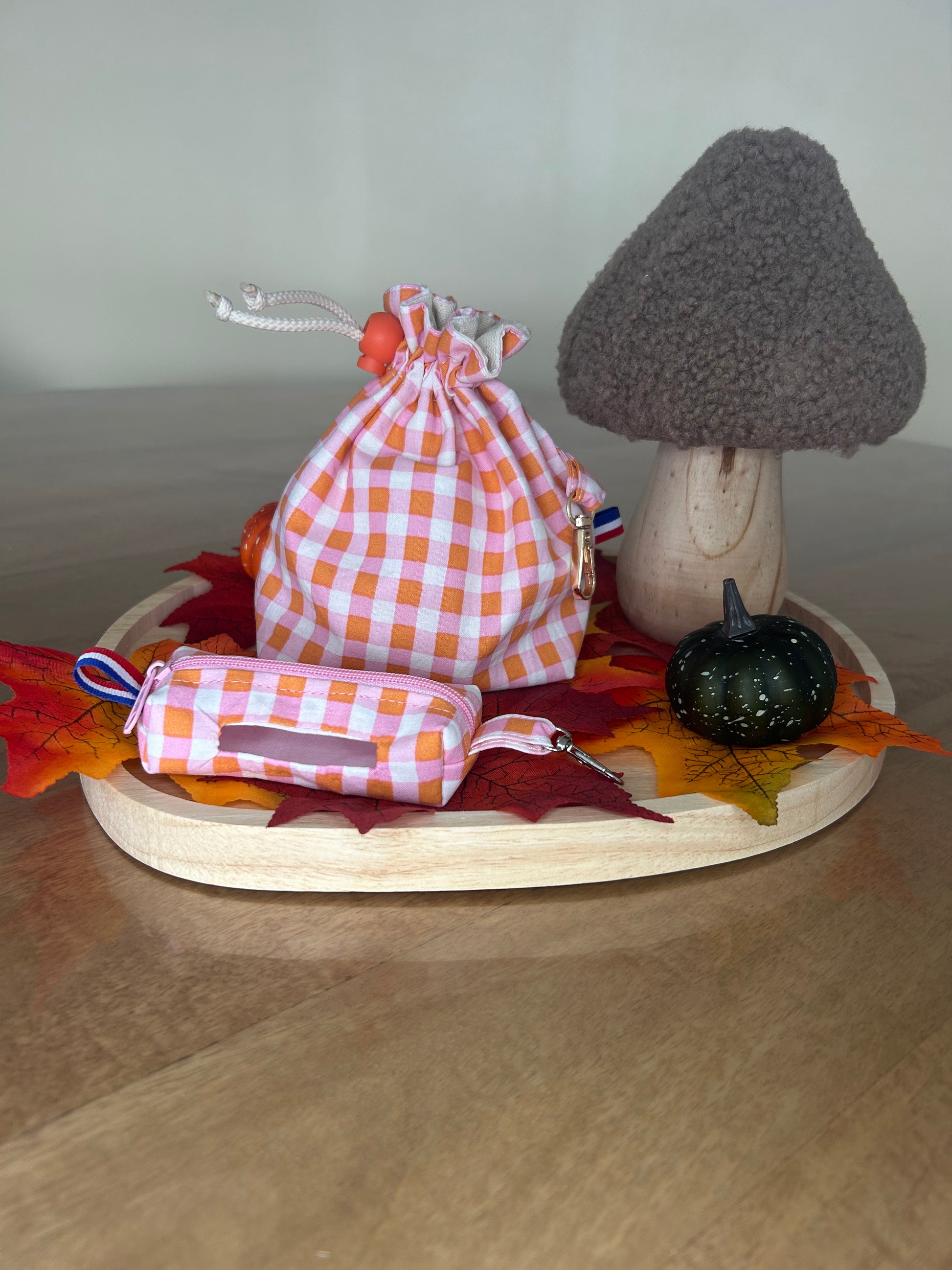 🐾 Pochon de balade motif Vichy rose – 100% coton, fait main en Normandie 🇫🇷