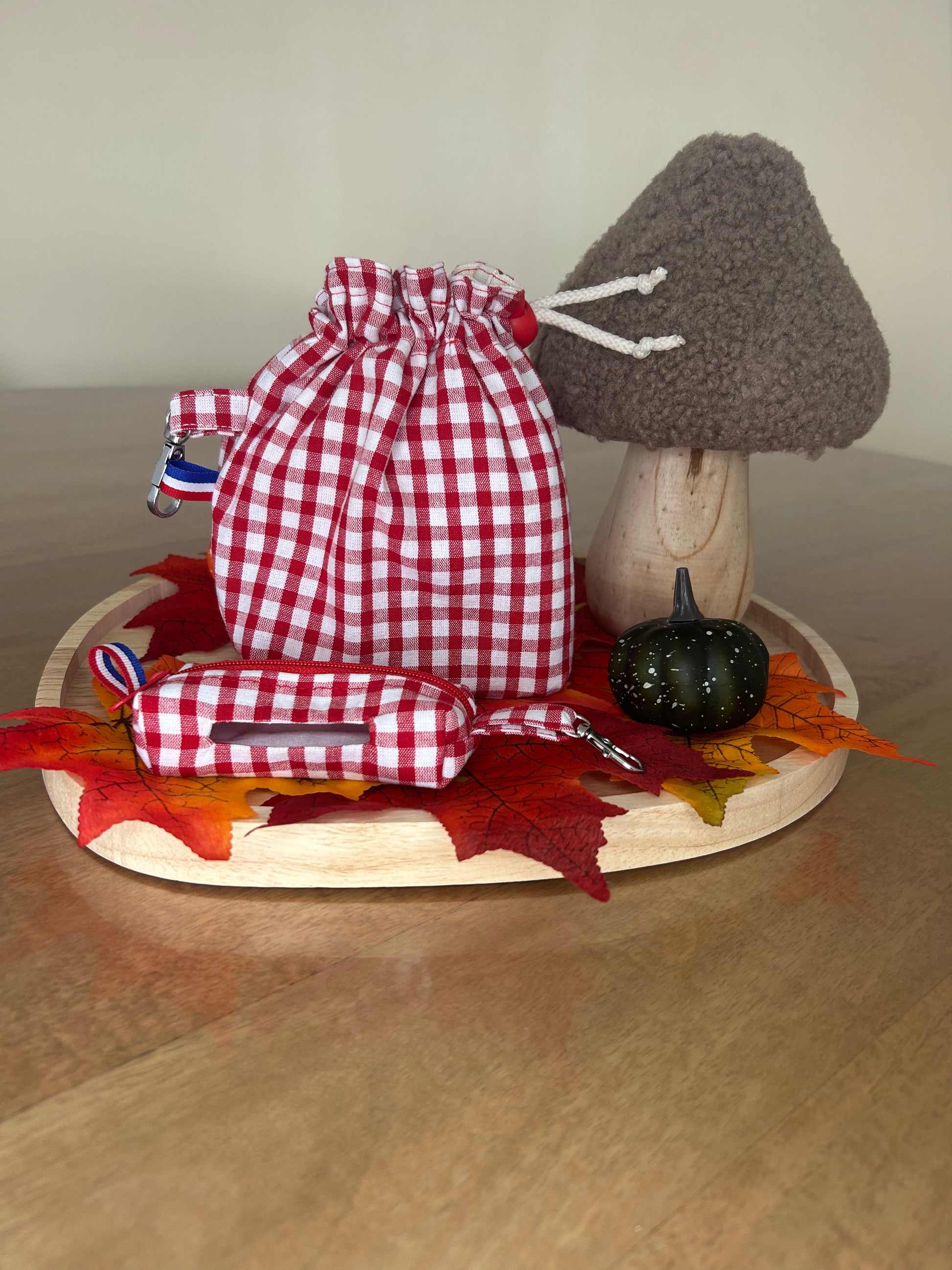 🐾 Pochon de balade motif Vichy rouge – 100% coton, fait main en Normandie 🇫🇷