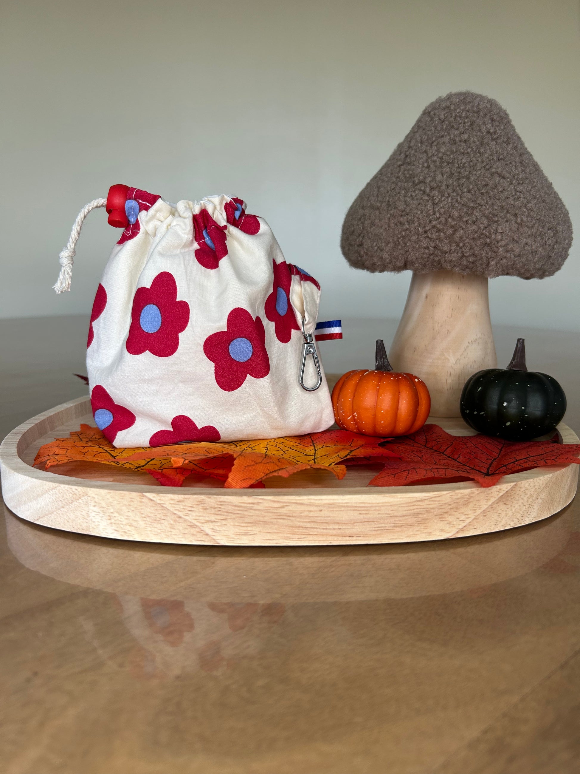 Ajoutez de la couleur à vos promenades avec ce pochon de balade motif Fleurs Pop, confectionné à la main dans notre atelier en Normandie 🧵🇫🇷