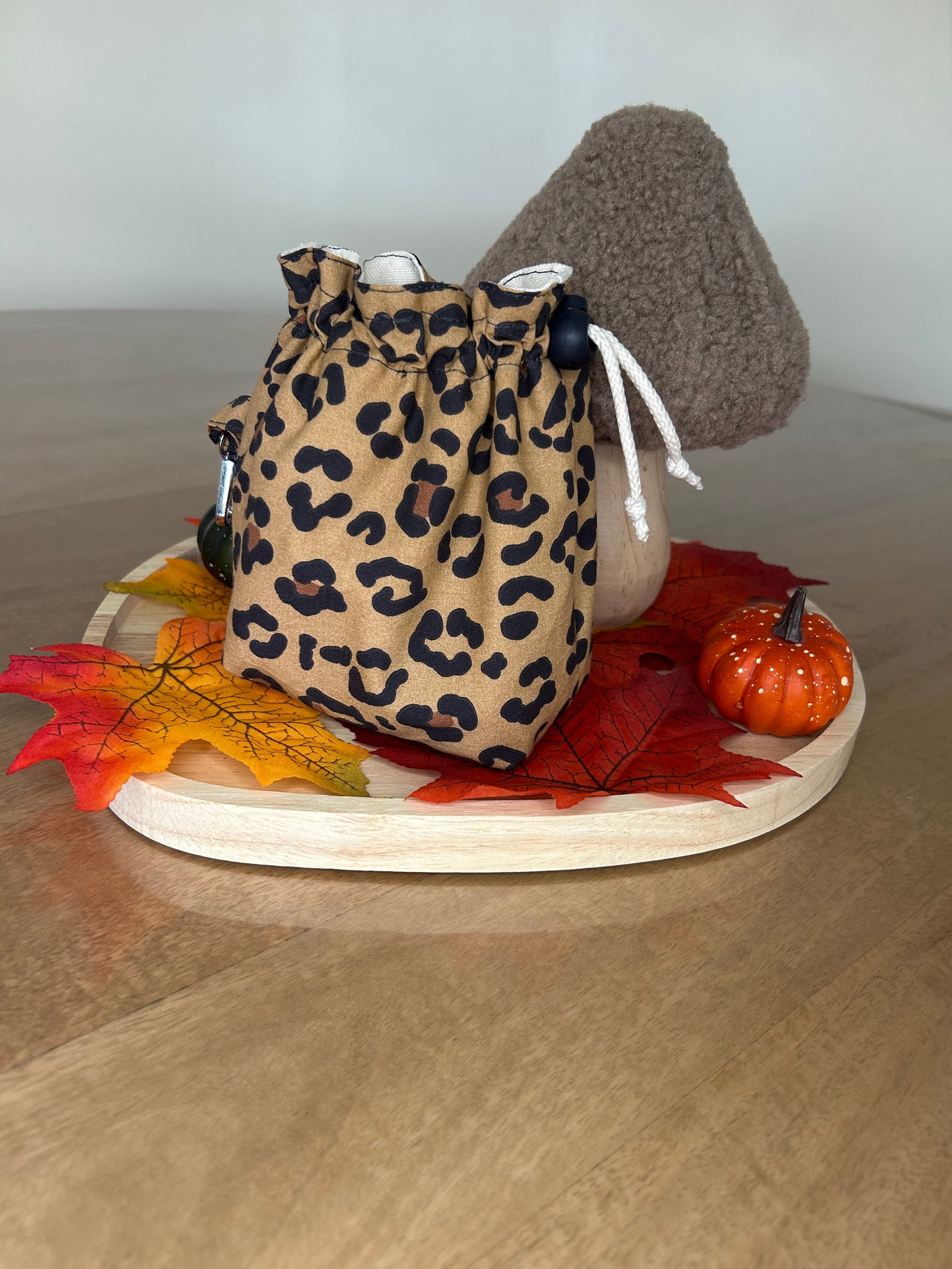 Optez pour ce pochon de balade motif Léopard, confectionné à la main dans notre atelier en Normandie 🧵🇫🇷